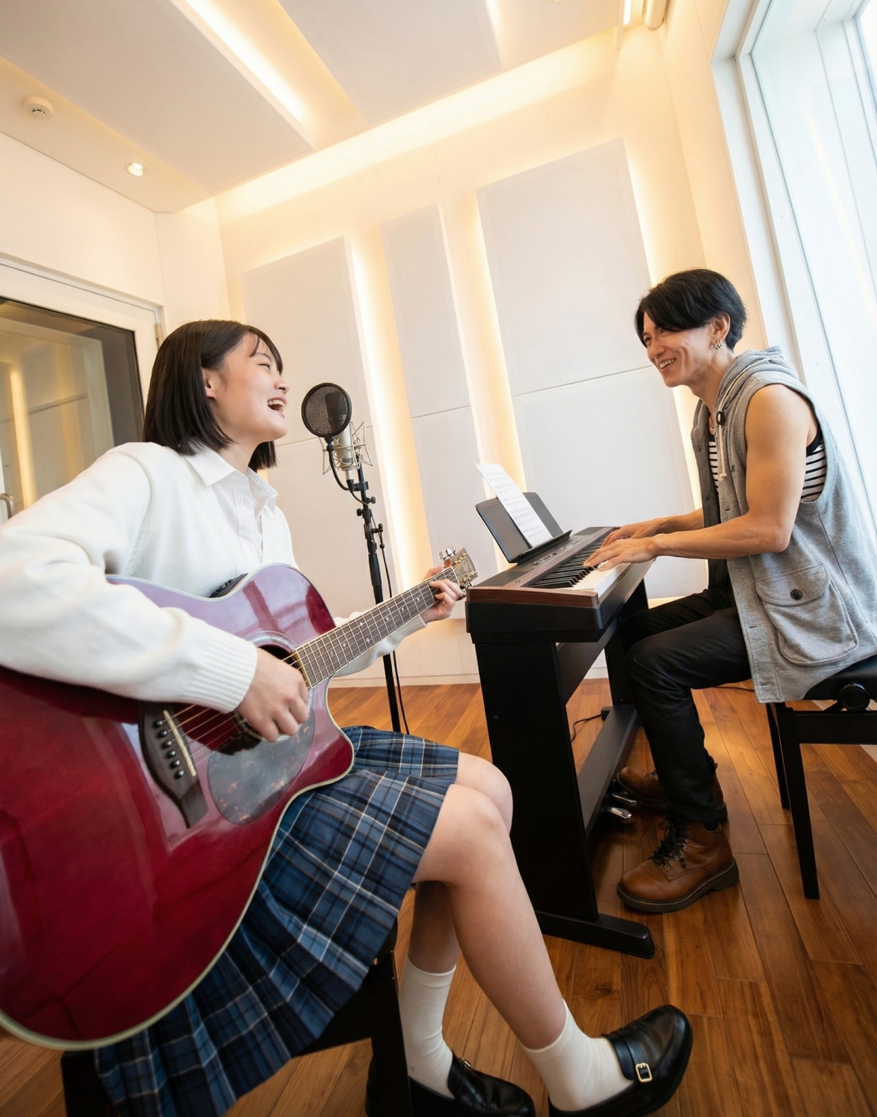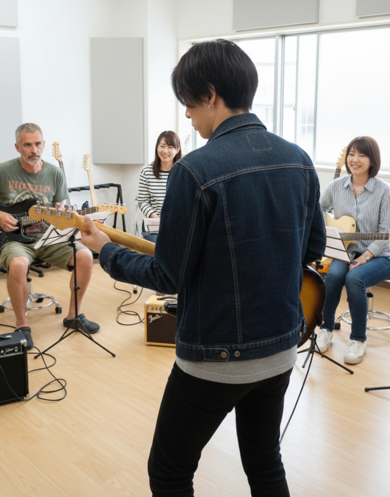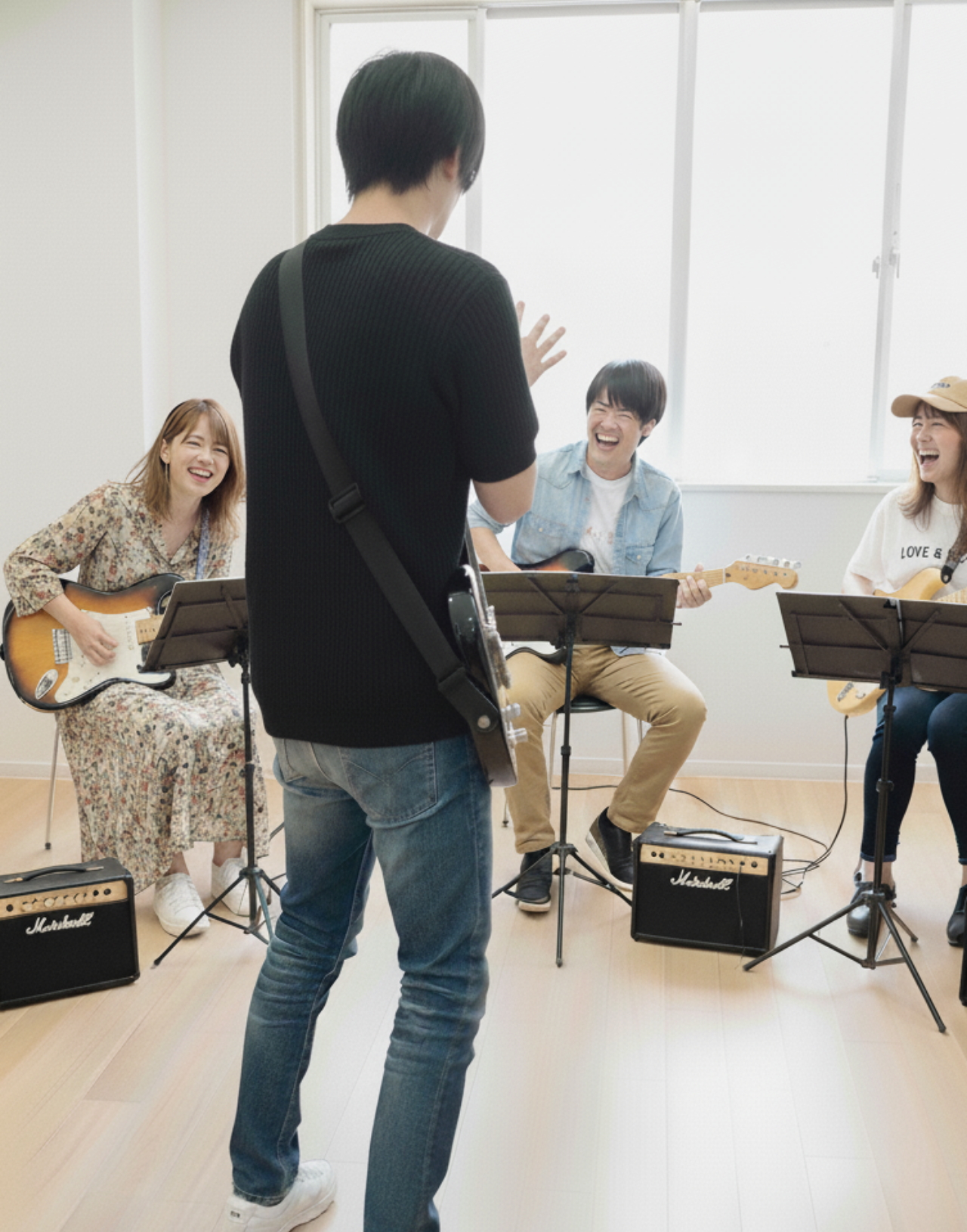 基礎から上級テクニックまで学んで頂ける楽器演奏の他、これからバンド活動を始めたい方の支援や音楽作品の作り方まで!